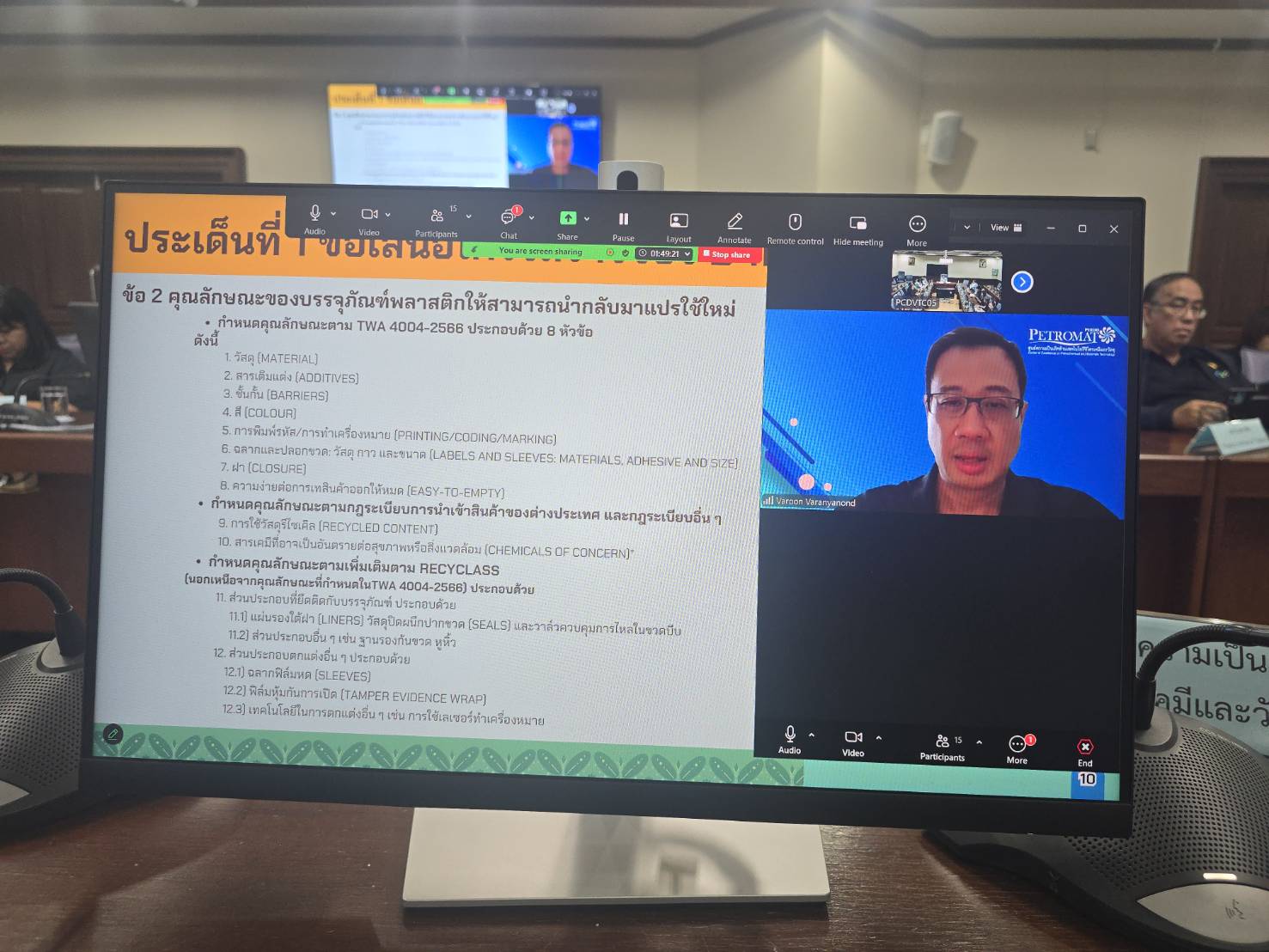 ภายในงานมีผู้แทนจากหน่วยงานภาครัฐ นักวิชาการ บริษัทเอกชน ภาคอุตสาหกรรม และกลุ่มซาเล้ง เข้าร่วมหารือ เพื่อปรับปรุงหลักเกณฑ์ให้เหมาะสมต่อการปฏิบัติจริง โดยมีแผนจัดทำเป็นประกาศกรมควบคุมมลพิษ เพื่อเป็นแนวทางสมัครใจในระยะเริ่มต้นสำหรับผู้มีส่วนได้ส่วนเสีย ก่อนพัฒนาไปสู่มาตรการภาคบังคับในระยะต่อไป ตลอดจนต่อยอดสู่การจัดทำหลักเกณฑ์สำหรับบรรจุภัณฑ์พลาสติกชนิดอื่นๆ