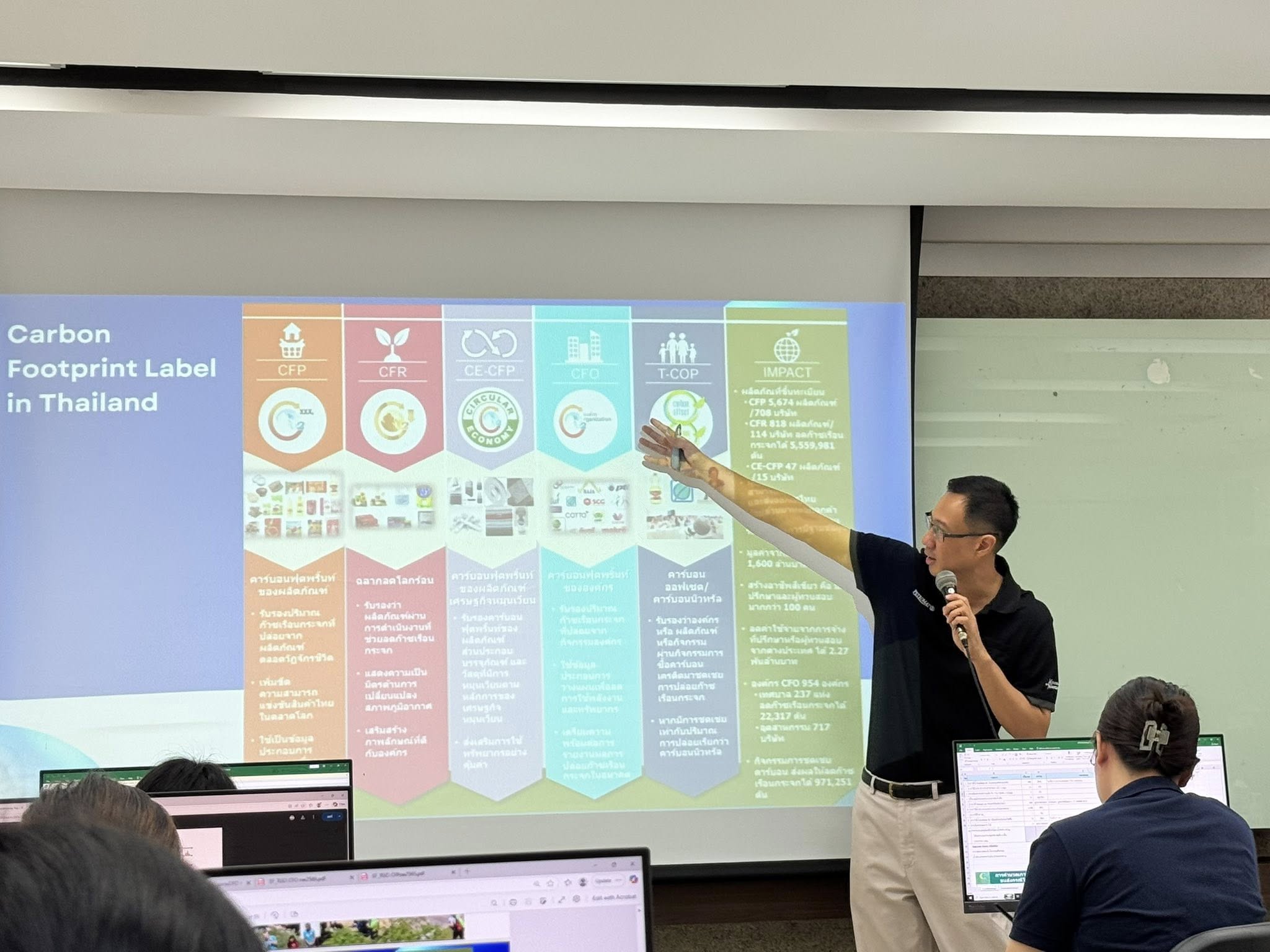 เนื้อหาการอบรมครอบคลุมการประเมินคาร์บอนฟุตพริ้นท์ขององค์กร โดยอธิบายแหล่งที่มาของการปล่อยก๊าซเรือนกระจก ทั้งทางตรงและทางอ้อมจากการใช้พลังงาน รวมถึงการปล่อยที่เกี่ยวข้องกับห่วงโซ่อุปทาน ตลอดจนแนวทางการจัดทำบัญชีก๊าซเรือนกระจกตามมาตรฐานสากล
