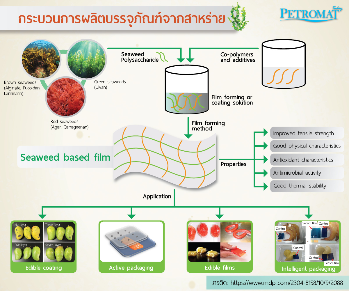 กระบวนการผลิตและประเภทของบรรจุภัณฑ์จากสาหร่าย